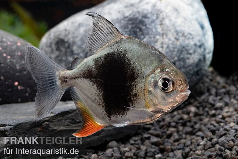 Der Blackberry Silver Dollar hört auf die wissenschaftliche Bezeichnung Myleus sp. Blackberry. Bei diesem Süßwasserfisch handelt es sich um einen optisch ansprechenden Vertreter aus der Familie der Sägesalmler (Serrasalmidae). Die ursprüngliche Heimat des Myleus sp. Blackberry ist Südamerika. Dort erstreckt sich sein Verbreitungsgebiet über den Amazonas, den Orinoco-See sowie das São Francisco-Becken. In ihrem natürlichen Habitat sind die Blackberry Silver Dollar bevorzugt in Gruppen anzutreffen. Die Schwarmfische ernähren sich weitestgehend vegetarisch. Das charakteristische Erkennungsmerkmal der Salmler ist der große schwarze Fleck auf der Körperseite, welcher sich markant von der ansonsten silbrigen Grundfärbung abhebt. Unsere Tiere sind Nachzuchten.