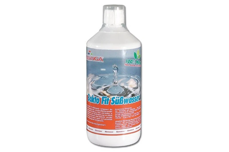 Bakto Fit von Femanga für Süßwasseraquarien verbessert die Lebensbedingungen der schadstoffabbauenden Mikroorganismen in Wasser, Filter und Boden. Die Bildung von Nitrat wird reduziert. Bakterien können sich rasch entwickeln.