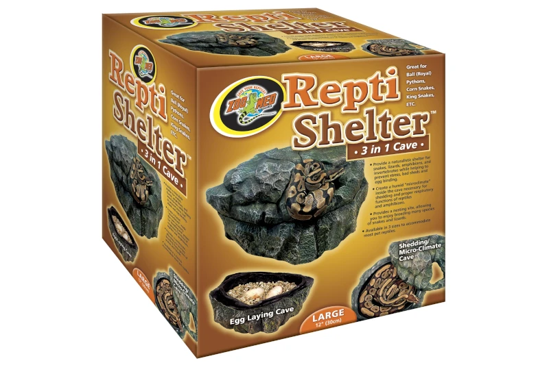 Die „Repti Shelter 3 in 1 Cave“ ist eine praktische Höhle für Terrarientiere. Sie bietet sehr viel Platz. Ihre Tiere können sich wunderbar darin verstecken, häuten oder Ihre Eier ablegen. Die Höhle selbst lässt sich ganz einfach reinigen und der Deckel ist sogar abnehmbar.